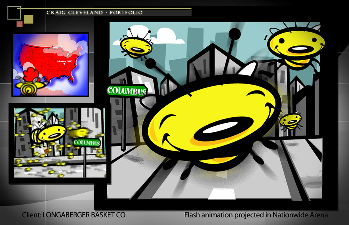 This was an animation created for the Longaberger company. The event was called "The Bee", and this animation was shown at Nationwide Arena in Columbus, Oh for an audience of 5,000.